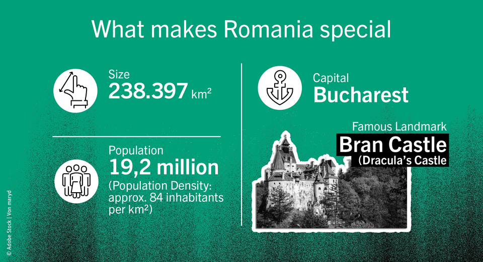 Over the coming weeks, our Romanian colleagues will take you on a tour of their homeland. Discover surprising facts about the country and its people, be inspired by the culinary diversity, and get to know some charming cultural quirks.