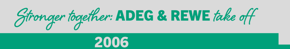 a new era began in 2006 with the entry of the REWE Group: Rewe initially took over 24.9 % of the shares in ADEG Österreich Handels-AG. In the years that followed, this stake was expanded until ADEG was fully integrated into REWE International AG. This gives ADEG a strong partner in European retail, which promotes the independence of ADEG retailers and at the same time offers the backing of an international group.