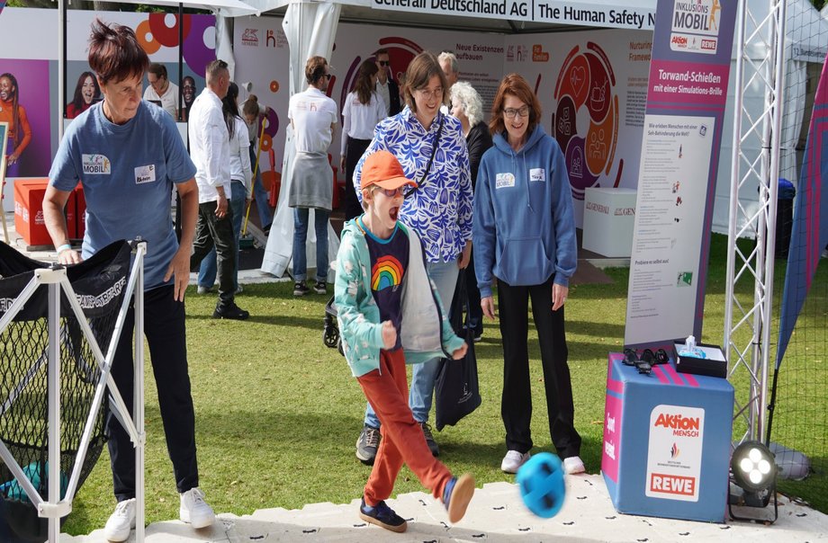 And this is where the Inclusion Mobile comes in. It has various pieces of sports equipment on board for people to try out together - including wheelchairs for wheelchair basketball, sports prostheses, subsoccer and goggles that simulate visual impairment when playing football. This year, the Inclusion Mobile has already stopped at 30 events with great success. The project shows that sport brings people together - and REWE is actively committed to an inclusive society.