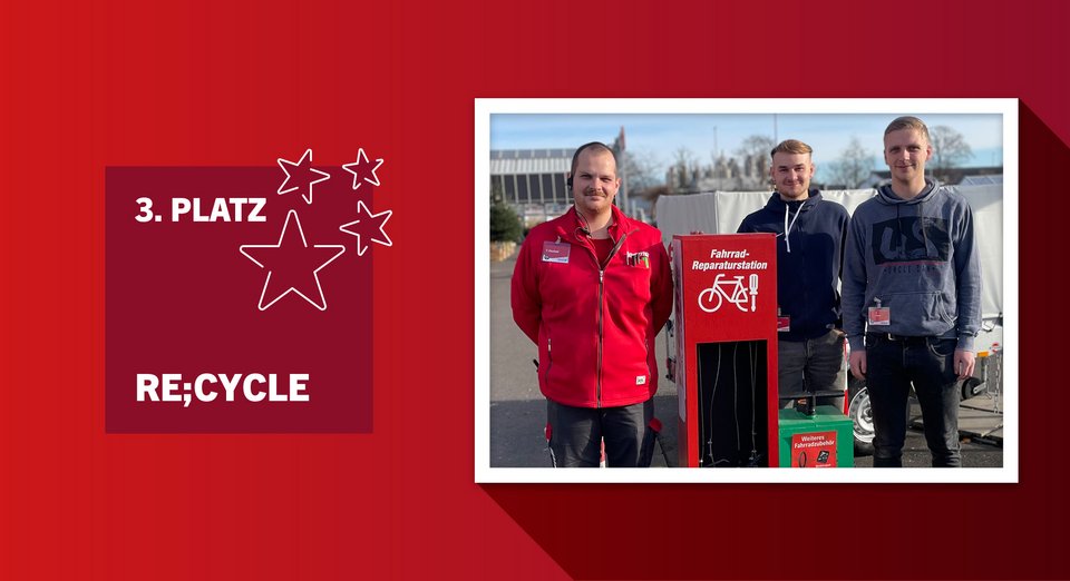 With their idea for simple bicycle repairs, the junior staff at toom wanted to show that Sustainability starts in everyday life: repairing instead of throwing away, avoiding waste and motivating customers to get on their bikes.