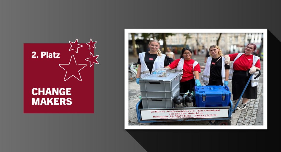 The ChangeMakers team is committed to helping homeless people in Cologne. Their donations were used to support the organisation Straßenwächter e. V., which provides clothing, food and hot meals.