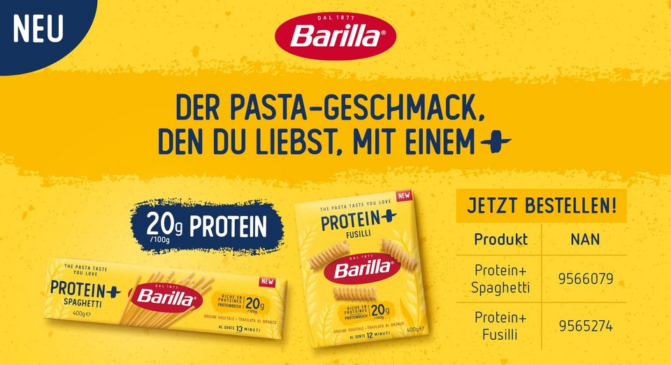Zur Markteinführung der neuen Barilla Protein+ Pasta ist eine reichweitenstarke Kampagne mit ca 100 Millionen zielgerichteten Kontaktpunkten geplant (Digital/Social/ POS).