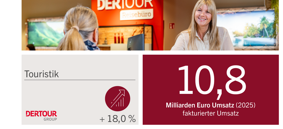 2025 markierte für die DERTOUR Group ein weiteres Jahr auf anhaltendem Erfolgskurs: Der fakturierte Umsatz erhöhte sich um 18,0 Prozent auf 10,8 Milliarden Euro. Dieses Plus resultierte aus einem Wachstum in allen Märkten. In Deutschland verzeichneten die DERTOUR-Veranstalter nach einem bereits sehr erfolgreichen Vorjahr erneut steigende Buchungszahlen und konnten ein Gästeplus von 4,5 Prozent erzielen. Besonders gefragt waren bei deutschen Reisenden Destinationen mit einem attraktiven Preis-Leistungs-Verhältnis sowie hochwertige All-inclusive-Angebote. Der Anteil der Buchungen in 5-Sterne-Hotels legte dabei erneut deutlich zu und wuchs um signifikante 39 Prozent.