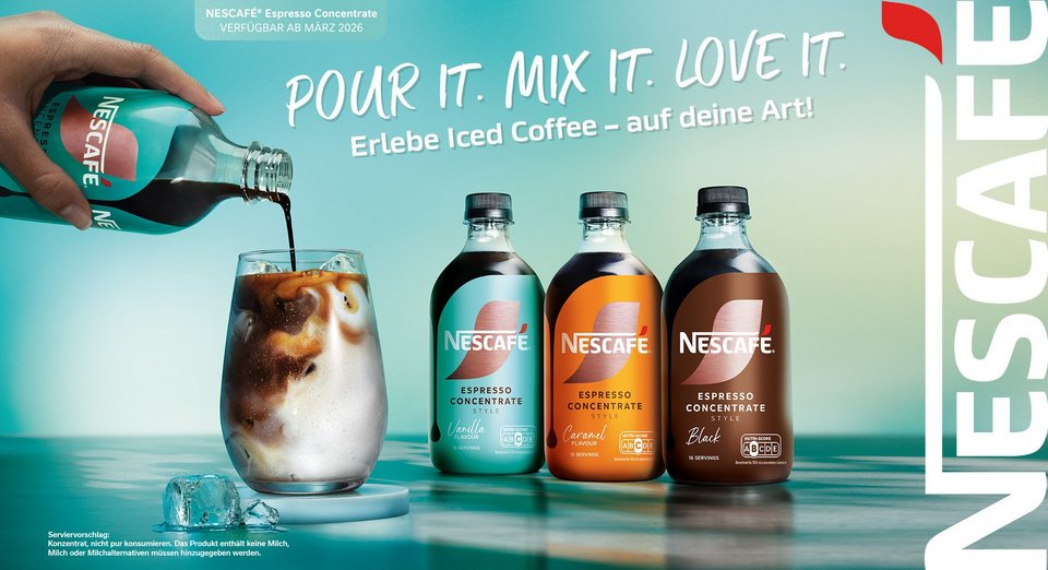 NESCAFÉ® Espresso Concentrate Style erschließt eine neue, wachstumsstarke Iced-Coffee-Kategorie und adressiert die hohe Nachfrage von Gen Z und Millennials. Das flüssige Konzentrat liefert Iced Coffee in Sekunden – intensiv im Geschmack, flexibel in der Anwendung und erhältlich in den Sorten Vanilla, Caramel und Black (ungesüßt) für starke Abverkäufe und Wiederkäufe. Am POS sorgt NESCAFÉ® Espresso Concentrate Style für maximale Sichtbarkeit: ein umfassendes POS-Paket für Regal & Fläche, aufmerksamkeitsstarke Zweitplatzierungen und eine reichweitenstarke 360°-Aktivierung – inklusive Digital OOH, Social Media, Festivals und TV-Partnerschaft mit „Der Bachelor“.