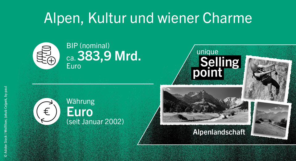 Hohe Lebensqualität und Vielfalt – vom Wilden Kaiser über den Wörthersee bis zur Wachau, von Kässpätzle bis Kaiserschmarrn, von moderner Kunst bis Mozart.