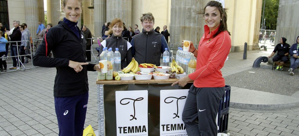 Das Leichtathletik-Event „Berlin fliegt!“ vor dem Brandenburger Tor ging am Samstag (5. September) in die fünfte Runde. Als Sponsor punktete die REWE Group unter anderem mit einem Temma-Verpflegungsstand.