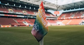 Der 1. FC Köln und die Kölner Haie setzen bei ihren Heimspielen gegen RB Leipzig und die Augsburger Panther ein Zeichen für Akzeptanz, Vielfalt und Gleichberechtigung. Das REWE-Logo auf dem FC-Trikot erstrahlt dabei in Regenbogenfarben.