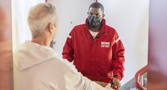 Nicht nur als FC-Torjäger liefert Anthony Modeste. Auch beim REWE-Lieferservice packte der Fußballstar jetzt mit an und lieferte seinen Kaffee in Köln-Niehl aus.