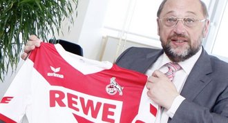 Besuch in Brüssel: Werner Spinner, Präsident des 1. FC Köln, reiste zu EU-Spitzenpolitikern. Im Gepäck hatt er Trikots des Bundesligisten – natürlich mit REWE-Logo. Die fanden in Brüssel prominente Abnehmer.