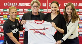 Im Zweitliga-Heimspiel gegen den SC Paderborn 07 am Sonntag (16.9.) lief der 1. FC Köln nicht wie gewohnt mit dem REWE-Logo auf, sondern machte den begehrten Platz auf der Brust frei für die DKMS – und unterstützte so die Suche nach Stammzellspendern für Blutkrebspatienten.