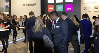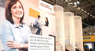 Auf dem Absolventenkongress in Köln präsentierte sich die REWE Group mit einem eigenen Stand. 40 Mitarbeiter erklärten Studenten und Jobsuchenden, was das Unternehmen alles zu bieten hat. Auch ein Vorstand gab Bewerbungstipps.