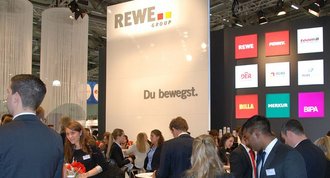 Auf dem Absolventenkongress in Köln präsentierte sich die REWE Group mit einem eigenen Stand. 40 Mitarbeiter erklärten Studenten und Jobsuchenden, was das Unternehmen alles zu bieten hat. Auch ein Vorstand gab Bewerbungstipps.