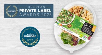 In der Kategorie „Vegetarisch & Vegan“ konnte die vegane Salatschale „Vegan Orzo“ beim European Private Label Award 2023 als herausragende Innovation im Bereich Handelsmarken überzeugen.