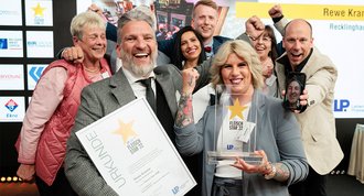 Besser geht´s nicht: Beim angesehenen Branchenwettbewerb „Supermarkt Stars 2022“ gewinnen Teilnehmende von REWE Gold in den Kategorien Marktleiter, Hausleiter und Team des Jahres sowie den zweiten Platz beim Förderpreis „Jungunternehmer des Jahres“.