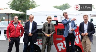 Einfach winken und schon kommt es mit 6 km/h herangefahren: Seit Montag fährt das Snack Mobil, das REWE digital gemeinsam mit Vodafone entwickelt hat, durch das Kölner Carlswerk.