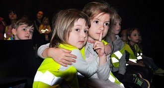 30 Rewelinos warfen einen Blick hinter die Kulissen des Theaters im Bauturm. Die Kita-Kinder sahen ein Stück über Ritter und Yetis. Auf der Bühne: die drei Theater-Leiter höchstpersönlich, mit ungewöhnlichen Requisiten.