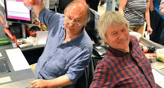 Wilfried Schmickler und Jürgen Becker haben bei REWE abkassiert – für den guten Zweck! Zwei Stunden haben die Kabarettisten Waren über den Scanner gezogen – und dabei eine stolze Summe eingenommen.