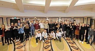 Bei der Ehrung der Besten feierten die Nachwuchskräfte ihre Top-Leistungen und die Verleihung des Nachhaltigkeits-Preises REWE Group Star. Das Highlight der Veranstaltung: eine spektakuläre Saalwette.
