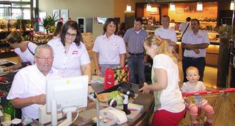 Prominente Verstärkung für das Team des REWE-Centers in Olpe: NRW-Ministerpräsidentin Hannelore Kraft arbeitete einen ganzen Tag lang im Markt mit – und packte kräftig mit an.