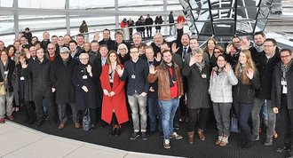Nachhaltig handeln und dabei wirtschaftlich erfolgreich sein – geht das? Dieses und ähnliche Themen diskutierten die Gäste des REWE Group-Jahresempfangs in Berlin. Der Bundestagsabgeordnete Lothar Binding nahm danach spontan zehn REWE-Kaufleuten zu einem spontanen Rundgang in den Bundestag mit.
