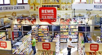 Einkaufen in historischer Kulisse – REWE macht es möglich: Zeitgleich mit dem Startschuss der Wiesbaden Biennale 2018 eröffnet im Foyer des Hessischen Staatstheaters ein REWE-Supermarkt.