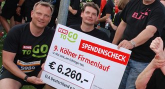 Beim 9. Kölner Firmenlauf gingen 626 Kollegen aus allen SGEn der REWE Group an den Start. Dank ihrer Leistung spendete REWE über 6.000 Euro – für den Kampf gegen eine seltene Krankheit.