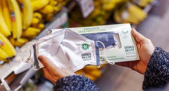 Als erste Lebensmitteleinzelhändler bieten REWE und PENNY ab sofort nachhaltig produzierte Mund-Nasen-Schutzmasken aus 100 Prozent Biobaumwolle an, die das staatliche Siegel „Grüner Knopf“ tragen.
