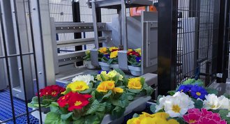 Sattes Grün, leuchtend bunte Blüten - das Pflanzenlager in Bottrop ist ein farbenprächtiger Arbeitsplatz. Und dazwischen: jede Menge braune Kartons. Die werden seit einigen Monaten von Kollege Roboter befüllt und verpackt.