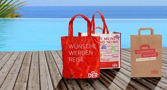 REWE macht es, PENNY auch, und nun kommt auch den DER Reisebüros kein Katalog mehr in die Plastiktüte. Stattdessen gibt´s künftig Taschen aus Papier, Recyclingmaterial oder Verwandlungstaschen zum Zusammenfalten.